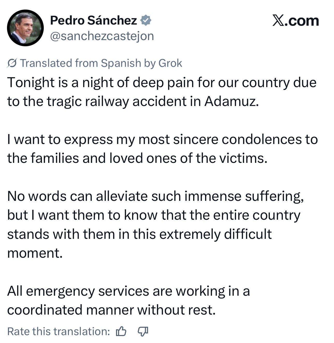 Spanish Prime Minister Pedro Sánchez announced three days of national mourning since the crash, saying that officials will “get to the bottom of” what caused the crash.