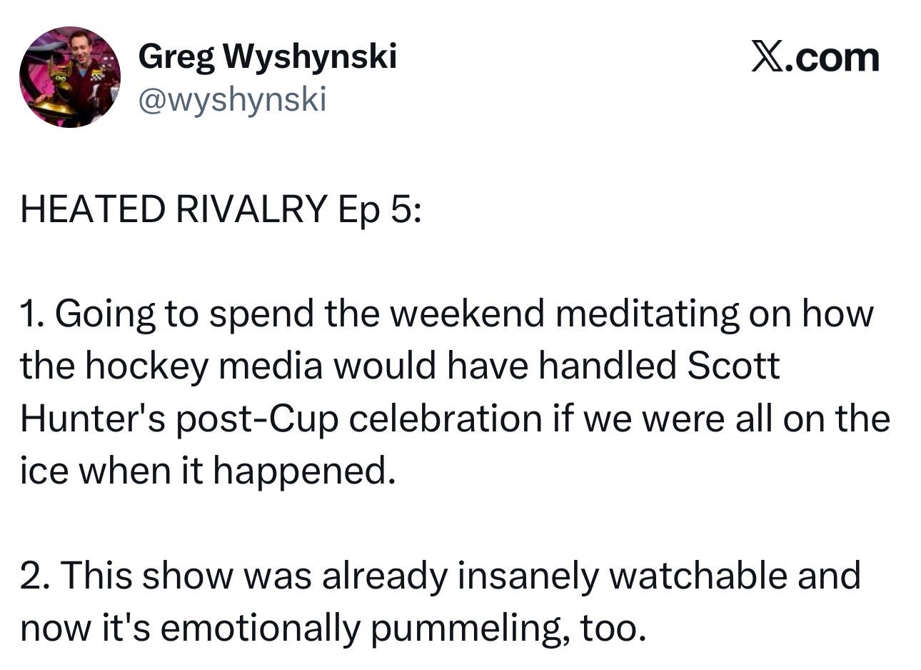 The series also gained recognition from the NHL itself, with ESPN NHL writer Greg Wyshynski acknowledging the show in an X post.