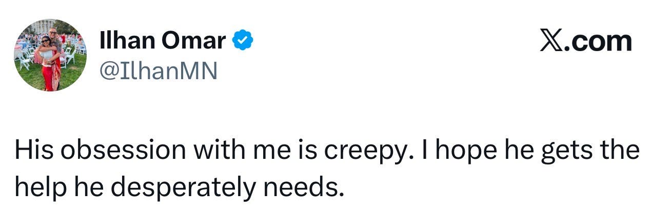 In a post on X, Omar called Trump’s remarks “creepy.”
