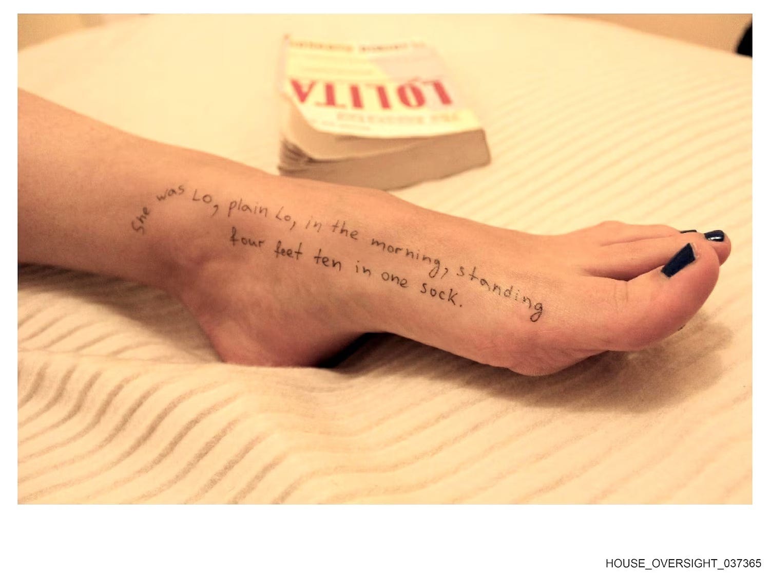 “She was Lo, plain Lo, in the morning, standing four feet ten in one sock,” read the quote, handwritten on someone’s foot.