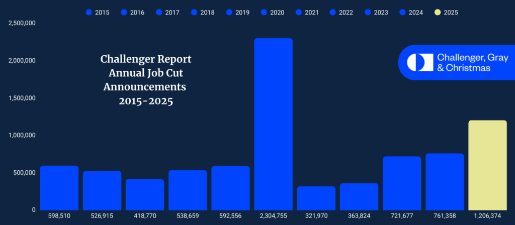 Further research from Challenger, Gray & Christmas found layoffs declined in December compared with November and were down 8% from a year earlier.