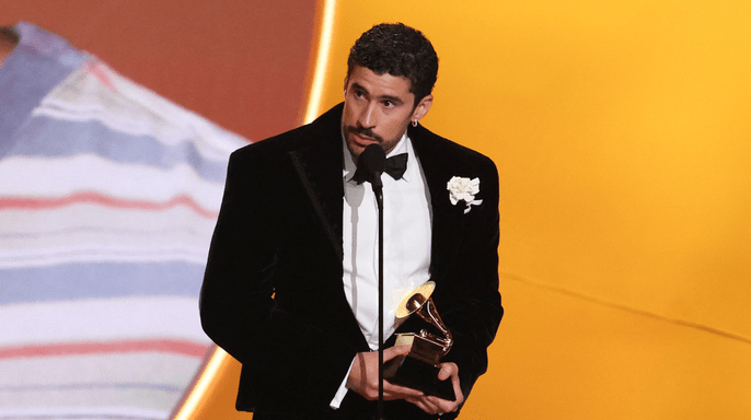 “I want to dedicate this to all the people who had to leave their home, their country, to follow their dreams,” said Bad Bunny, whose album Debí Tirar Más Fotos became the first Spanish-language album to win Album of the Year and the third Latino artist to win the award.