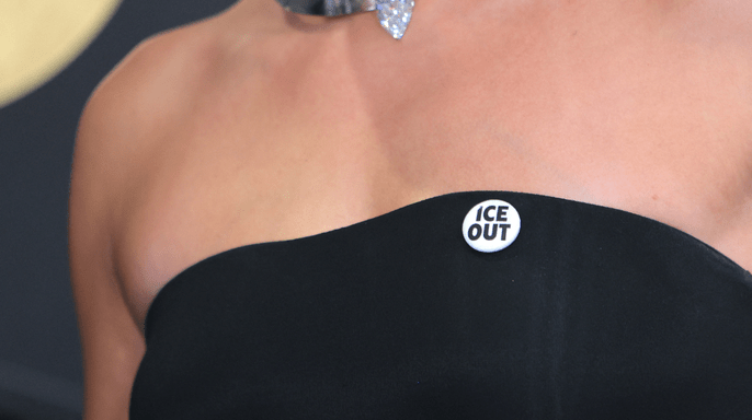This comes as many celebrities, including Billie Eilish, her brother and producer Finneas, Joni Mitchell, Kehlani, Justin and Hailey Bieber, Olivia Rodrigo, and Jack Antonoff, wore pins labeled “ICE out,” criticizing the Trump administration for its immigration policies.